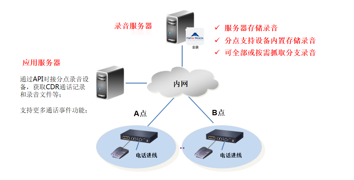 企業軟件應用系統程序如何獲取電話錄音和通話記錄-錄音管理軟件-API開發對接企業軟件應用系統程序如何獲取電話錄音和通話記錄-錄音管理軟件-API開發對接 目前眾多涉及到電話溝通的公司崗位存在錄音和通話記錄的監管需求,監管需求一方面來自單位內部管理考核,另一方面有可能來自第三方監管單位。電話錄音的必要性有以下幾點,通過這些理由我們了解為什么客戶需要錄音: 1、確保呼叫溝通中雙方通話合法合規,雙方溝通內容是符合公司業務流程規范的,通過錄音可以檢查內容的準確性。 2、作為證據,通過錄音解決和客戶之間矛盾和糾紛。溝通錄音文件可以作為證據來避免糾紛的發生。 3、錄音文件內容可為管理人員提供未來指導培訓的資料和服務保障的資料或者監聽的需要。 4、通過溝通錄音,進一步提升產品服務的話術和服務水平。 5、獲得客戶用戶體驗,通過溝通錄音獲知成功的用戶體驗內容資料。 6、通過溝通錄音獲得用戶對產品的反饋,構建完善的產品開發分析數據。 7、實時分析溝通中的用戶體驗,及時了解用戶真實想法,第一時間幫助用戶解決問題。 8、支持某些業務場景中的第三方部門的強制要求。某些公司或者部門要求呼叫錄音,例如人力資源部門對外的溝通,采購部門的溝通和律師溝通等,證監會、銀監會對于金融部門客服通話記錄要求,或者運營商根據法律要求的對某些資源的錄音。 9、提供AI賦能接口,幫助實現海量大數據的處理。 眾多企業應用軟件系統,例如OA、CRM、客服系統、應急管理、企業管理系統等應用缺乏對于通信設備和通話記錄的管理模塊,針對這種應用場景,聯訊億科提供了單點/多點/分布式電話錄音解決方案,該方案具有成本低、功能豐富、接口靈活的特點,通過錄音管理軟件可獲取單點/多點電話錄音、通話記錄,通過應用軟件API對接可快速實現應用上的錄音獲取、通話記錄查詢,并可根據用戶需求完成應用軟件的深度定制。 聯訊錄音管理方案拓撲如下: 聯訊語音API對接拓撲關系如下: API有如下四類本領: 可實現的主要功能有:點擊撥號、來電彈屏/去電彈屏、通話記錄、錄音、狀態監控、分機組和隊列、IVR語音導航、滿意度調查、叫醒服務、電話通知、語音通知、語音信箱、語音驗證碼、來電黑/白名單等。 聯訊IPPBX設備可授權開放統一接口——API,開發者可以通過API對IPPBX設備進行控制、監控和數據統計等。 API本質上是經過封裝的簡單XML消息,應用服務器和IPPBX設備之間通過HTTP協議進行通信。 1.應用服務器通過 API對IPPBX進行操作:參數查詢、參數配置、狀態查詢、呼叫控制、呼叫轉接等。 2.IPPBX實時向應用服務器推送報告:分機狀態變化、呼叫狀態、配置變化、服務啟動、DTMF、語音播放完畢和通話記錄等。 API使IPPBX設備具有更大的靈活性和可操作性,開發者可利用API開發或對接呼叫中心、客服系統、應急指揮、調度系統、計費系統、酒管系統、CRM、OA辦公系統等豐富多彩的應用。 |
