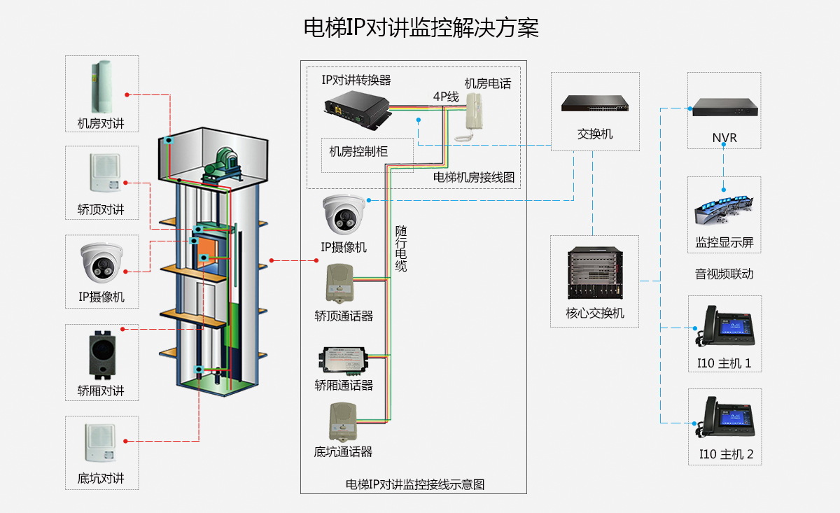 電梯五方對講廣播IP融合通信解決方案 二或四線電梯IP五方對講廣播融合解決方案,助力電梯行業(yè)的信息化發(fā)展,將融合通信指揮技術(shù)應(yīng)用于電梯日常維護(hù)和應(yīng)急求助管理中,實(shí)現(xiàn)電梯管理的智慧運(yùn)營。 解決方案可兼容電梯自帶的12V,二/四線制有線模擬對講通話器,無需更換即可實(shí)現(xiàn)電梯IP網(wǎng)絡(luò)對講 可聯(lián)動(dòng)電梯監(jiān)控系統(tǒng)(??低暎笕A,雄邁方案的網(wǎng)絡(luò)攝像機(jī)均可聯(lián)動(dòng)) |