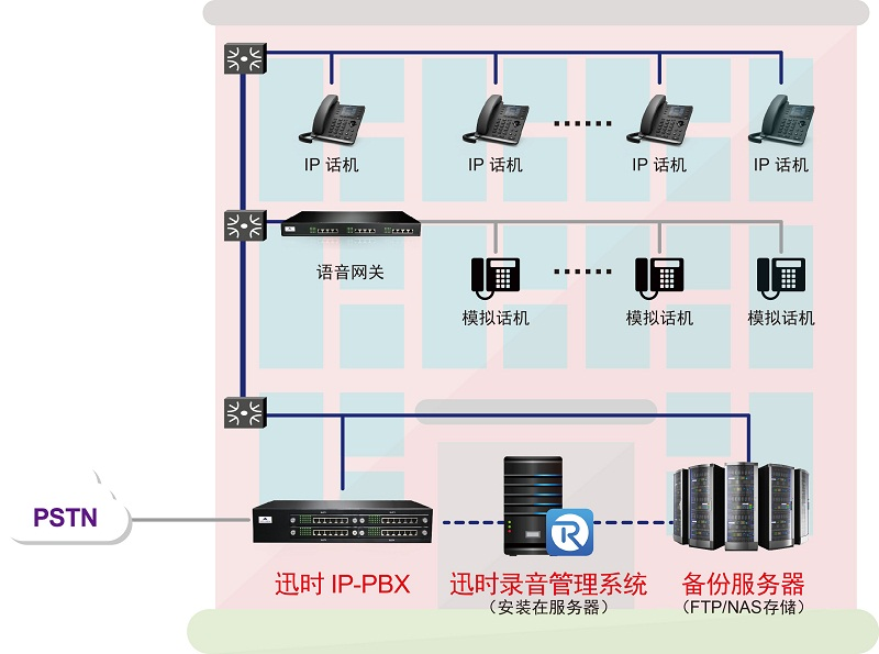 銀行證券保險電話錄音方案近年來,銀監會、保監會、證券會陸續發文要求銀行、保險、證券等機構在“在電話銷售產品過程中必須進行錄音”,提高突發糾紛問題的處理速度,提升客戶服務水平和客戶滿意度。 銀行證券保險電話錄音方案,通過網絡將迅時電話交換機(IP-PBX)產生的所有電話錄音文件統一存儲在服務器上,配合靈活的備份策略,實現錄音長久存儲(服務器硬盤)。 方案價值- 低成本擁有專業錄音管理系統- 錄音零丟失 - 滿足金融行業錄音長時間存儲的需求 - 支持錄音文件加密,保障數據安全性 - IP-PBX接入固定電話(PSTN)和員工坐席(IP話機或模擬話機) |